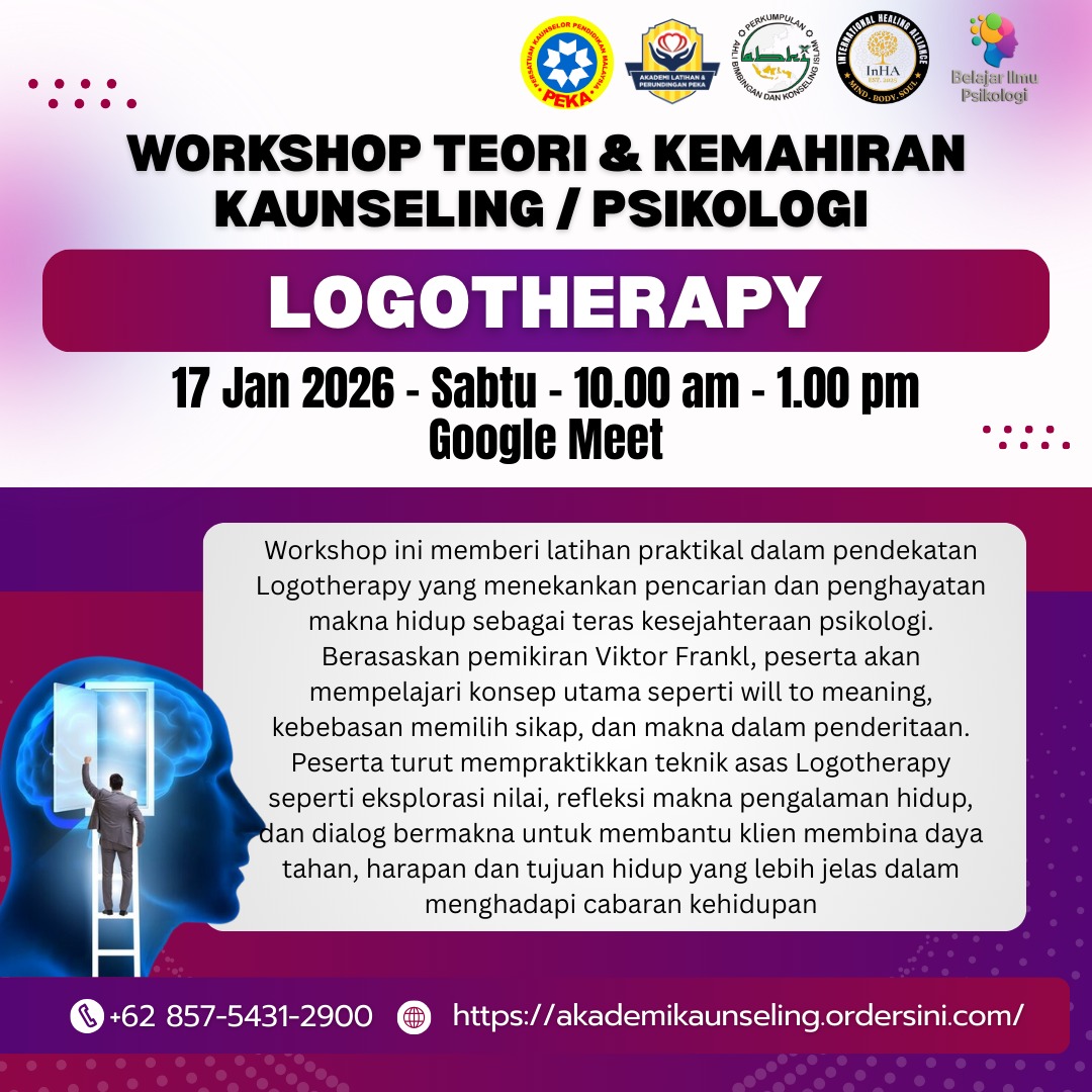 Untuk pengalaman pembelajaran yang lebih mendalam, buku ini turut ditawarkan bersama Workshop Teori & Kemahiran Logotherapy.